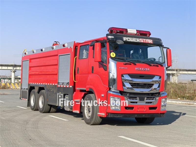 Trak bomba buih Isuzu GIGA 6X4 10 meter padu diasaskan pada casis Isuzu GIGA 6X4, dengan berat kasar kenderaan 35 tan dan jarak roda 4800+1370mm. Ia dilengkapi dengan enjin Isuzu 6WG1-TCG62 520hp dan transmisi 12-kelajuan Pantas. Bahagian hadapan superstruktur menempatkan petak peralatan, bahagian tengah mengandungi tangki air keluli karbon 8000L dan tangki buih keluli tahan karat 2000L, dan bahagian belakang adalah bilik pam, dilengkapi dengan pam bomba CB10/140-XZ, panel kawalan, hos kebakaran, peralatan memadam kebakaran, dsb. Pemantau kebakaran PL8/64 terletak di bumbung.