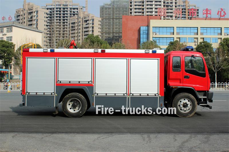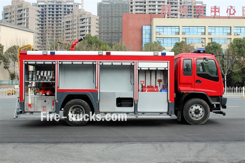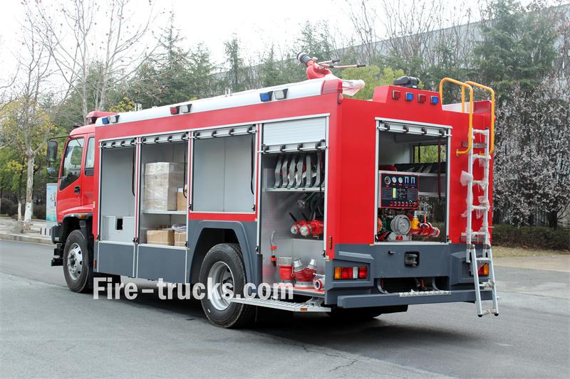 Trak bomba buih Isuzu GIGA 6X4 10 meter padu diasaskan pada casis Isuzu GIGA 6X4, dengan jarak roda 4600mm+1370mm. Ia dilengkapi dengan enjin Isuzu 6UZ1-TCG61 dan transmisi 12-kelajuan Pantas. Bahagian hadapan bangunan besar menempatkan petak peralatan, bahagian tengah mengandungi tangki air keluli karbon 8500L dan tangki buih keluli tahan karat 1500L, dan bahagian belakang adalah bilik pam, dilengkapi dengan pam bomba CB10/60-XZ, panel kawalan, hos kebakaran, peralatan memadam kebakaran, dsb. Pemantau kebakaran PL8/48 terletak di atas bumbung.
