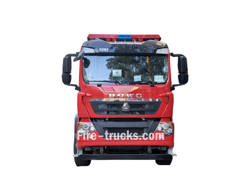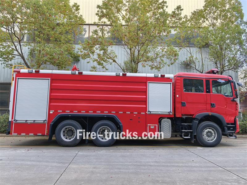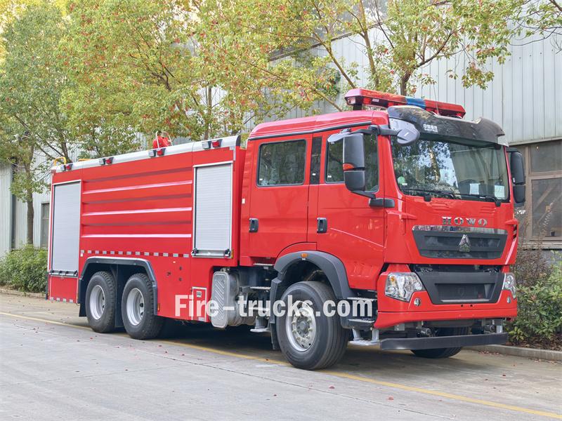 Trak bomba busa Howo TX460 6x4 12 cbm menggunakan kabin Sinotruk TX 6x4, dengan jarak roda 4600+1400mm, dan dilengkapi dengan enjin SINOTRUK MC11.46-61 dan kotak gear HW19710. Bahagian hadapan struktur atas menempatkan petak peralatan untuk menyimpan pelbagai peralatan pemadam kebakaran, manakala bahagian tengah mengandungi tangki air keluli karbon 9 meter padu dan tangki busa 3 meter padu. Bahagian belakang menempatkan bilik pam, dilengkapi dengan pam bomba CB10/60-RS, panel kawalan, dan beberapa peralatan pemadam kebakaran tambahan. Tangki air dan busa di atas bumbung dilengkapi dengan lubang masuk, dan monitor kebakaran PL8/48 juga disertakan.
