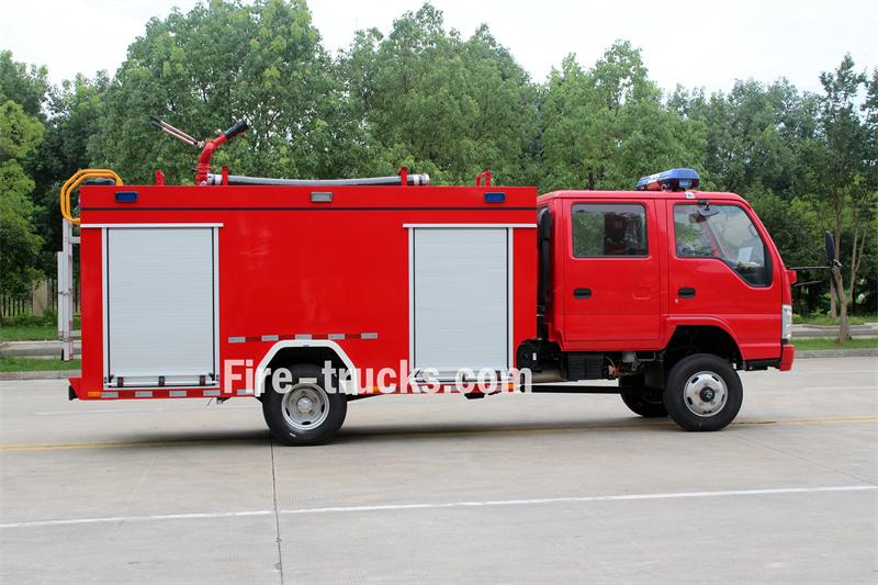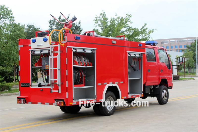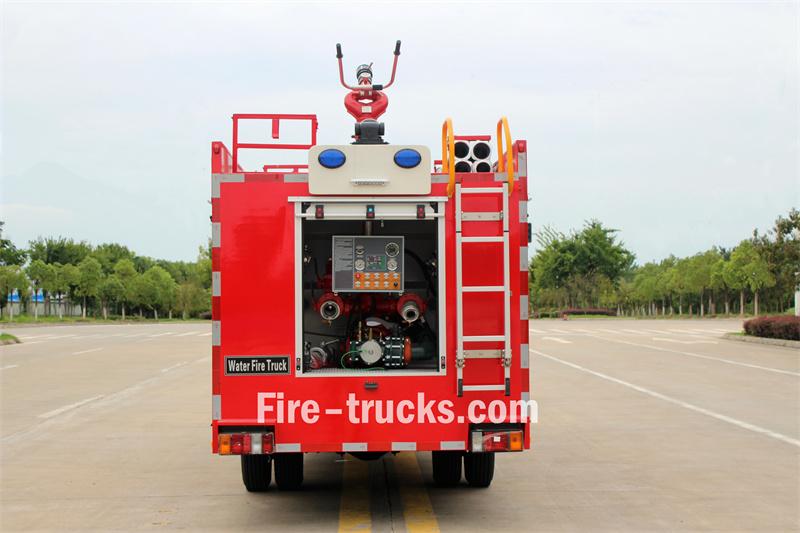 Trak bomba tangki air Isuzu 3cbm ini berasaskan pada casis teksi berkembar Isuzu 100P 4x4 dengan jarak roda 3360mm. Ia dilengkapi dengan enjin Isuzu 4KB1-TCG60 dan kotak gear 5-kelajuan MSB. Bahagian hadapan superstruktur menempatkan petak peralatan, bahagian tengah mengandungi tangki air keluli karbon 300L, dan bahagian belakang adalah bilik pam, dilengkapi dengan pam bomba CB10/60-XZ, panel kawalan, hos kebakaran, peralatan memadam kebakaran, dsb. Pemantau kebakaran PS8/30W dipasang di atas bumbung.