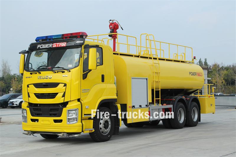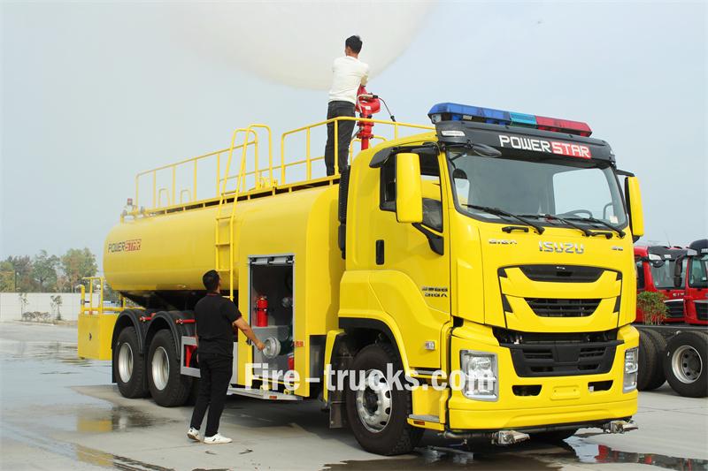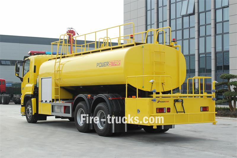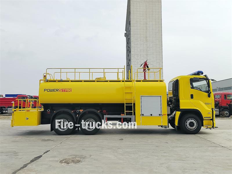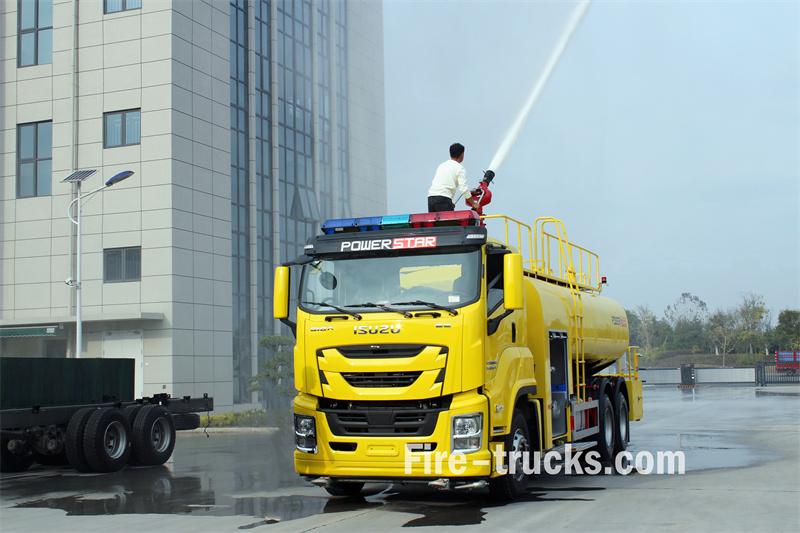 Trak pemercik api Isuzu 12000L menggunakan casis Isuzu FVZ GIGA 6X4 dengan jarak roda 4650+1370mm. Ia dilengkapi dengan enjin Isuzu 6HK1-TCG60 dan transmisi 9-kelajuan PANTAS. Bahagian hadapan superstruktur menempatkan rumah pam, yang mengandungi pam bomba CB10/60-RS dan panel kawalan. Di belakang rumah pam adalah tangki air keluli karbon 12 meter padu. Bahagian belakang mempunyai platform kerja dengan kotak alat, penyiram sisi, tangga di bahagian belakang tangki, tolok aras, kepala pemercik sebelah kanan, pagar atas boleh tanggal dan monitor kebakaran PS8/50W.