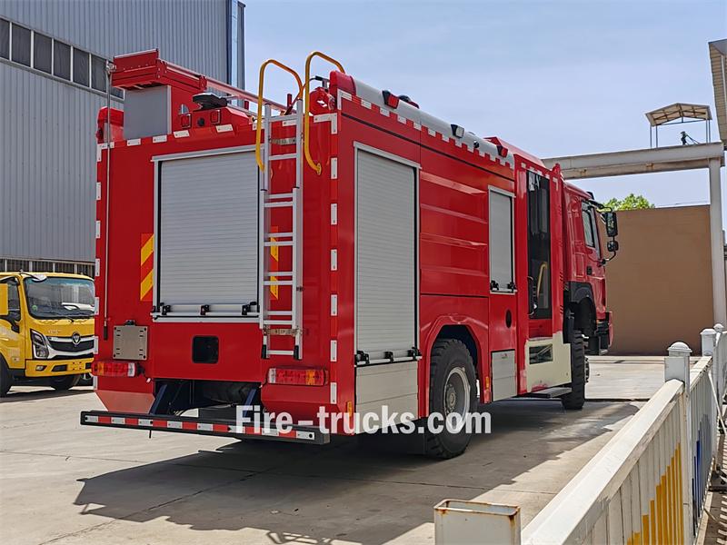HOWO 4×4 Fire Tanker Truck ialah kenderaan pemadam kebakaran luar jalan yang dibina pada casis SINOTRUK HOWO 4×4. Ia terdiri daripada beberapa komponen teras: casis berprestasi tinggi, kabin krew bebas, tangki air keluli 6 meter padu, tangki buih keluli tahan karat 2 meter padu, pam bomba CB10/60, pemantau kebakaran PL8/48 dan petak peralatan modular. Ia juga mempunyai sambungan kuasa berlepas (PTO) dan sistem saluran paip profesional. Dikuasakan oleh enjin Weichai 380 HP dan sistem 4WD sambilan, digabungkan dengan tayar luar jalan profesional, kenderaan itu memberikan kuasa yang kuat dan keupayaan semua rupa bumi yang luar biasa bersama-sama dengan kebolehsuaian kepada persekitaran yang kompleks.